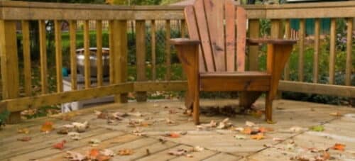 Utilice el nivel de carpintero de seis pies para comprobar que la plataforma esté nivelada antes de marcar el paso de drenaje. Este es el ángulo en el que se instala el techo debajo de la cubierta para que el agua drene fuera de su casa. Márquelo con una línea de tiza, permitiendo una pendiente descendente de una pulgada por cada 10 pies de la plataforma desde la casa hasta el borde exterior.