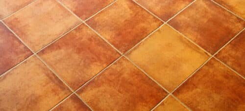 Limpie bien la superficie existente del piso de terracota antes de quitar los acabados viejos. Barrer el suelo con una escoba de cerdas duras, llegando a todos los rincones, grietas y hendiduras entre baldosas y en las propias baldosas si las hubiera. Aspire los restos de polvo y lechada escamosa que queden.