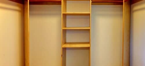 Mi armario tenía 55 pulgadas de ancho y un poco más de 2 pies de profundidad. Mis resultados incluyeron un sistema de estantería central de 12 pulgadas de ancho con una barra de 21 pulgadas en un lado y dos barras de 20 pulgadas en el otro lado.