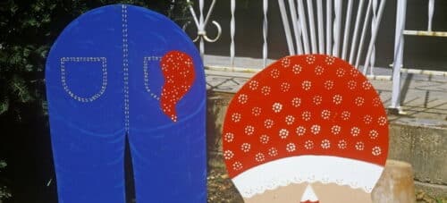 Usando las líneas de lápiz como guías, puede comenzar a pintar su adorno. Puede usar pintura o sus marcadores de magia negra permanentes para letras o detalles más finos. Pero recuerde, estos se verán (por lo general) desde la distancia, así que haga que sus líneas sean más gruesas. Permita que el adorno se seque durante la noche antes de clavarlo en el suelo.